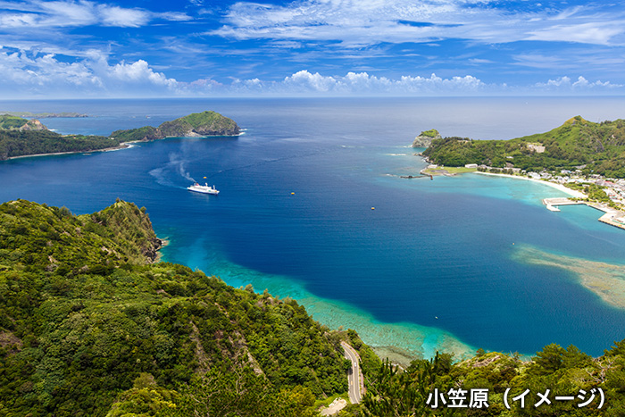 東京から南に約1,000km離れている大小30ほどの島々からなる海洋島ですが、唯一の定期船「おがさわら丸」で片道24時間と海外ほとんどの国よりも時間がかかります。