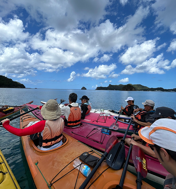2日目の午前中はシーカヤック体験。波も穏やかで、誰ひとり転覆することなく無事に終了しました。